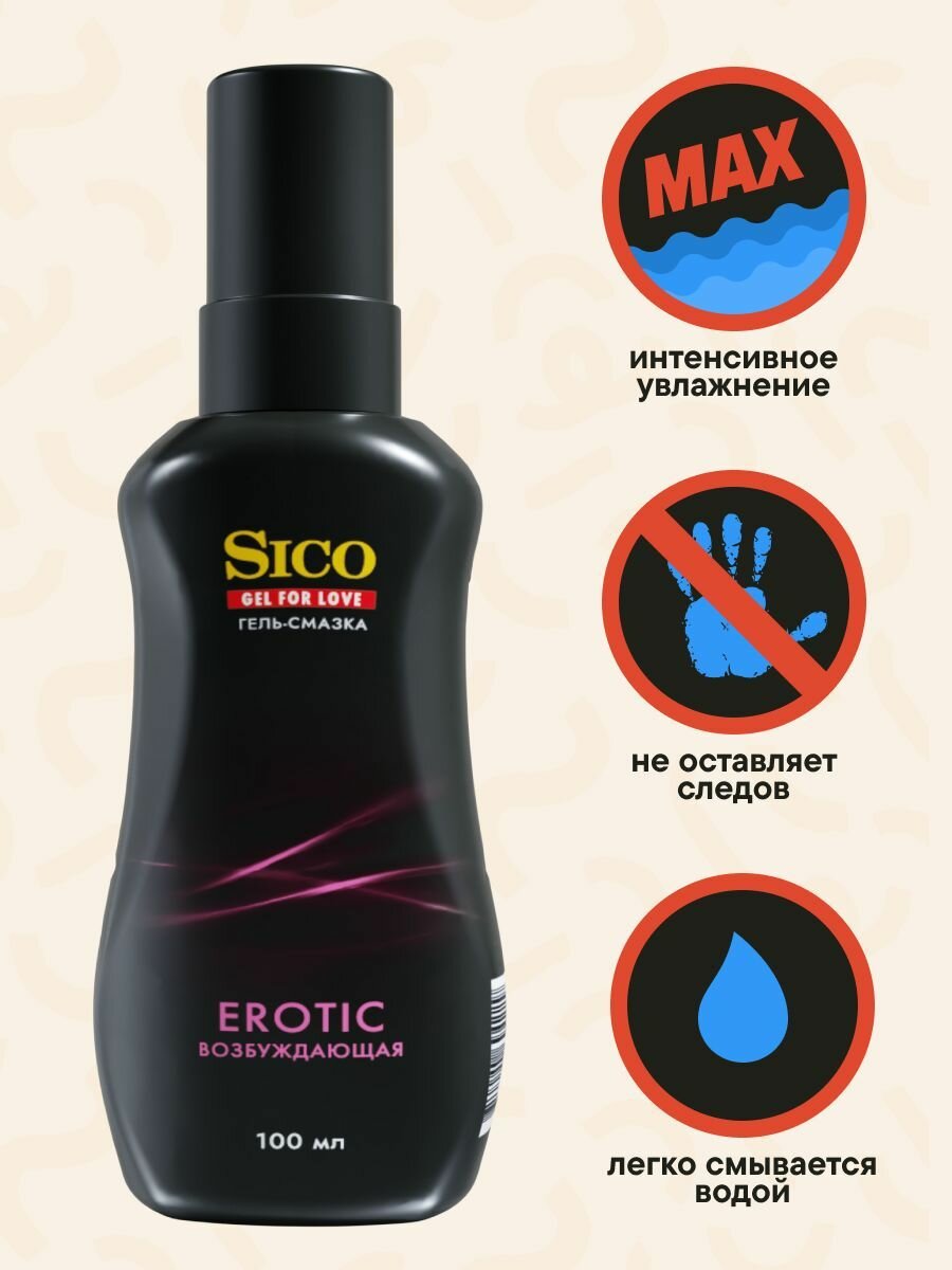 Смазка интимная лубрикант на водной основе SICO Erotic, 100 мл интересное: