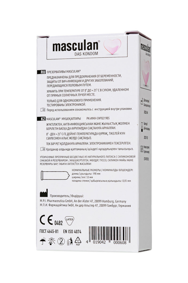 Презервативы Masculan Pur №10, ультратонкие презервативы Маскулан, много смазки, 10 шт. в упаковке