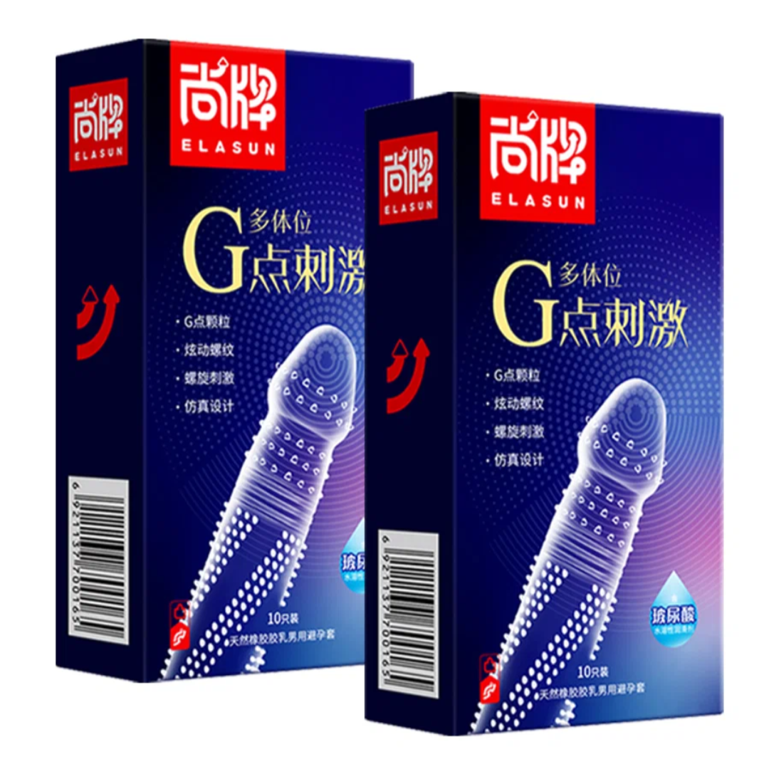 Презервативы ELASUN, ультратонкие, с усиками, ребристые, с шипами стимулирующие точку G, со смазкой, 10 шт.
