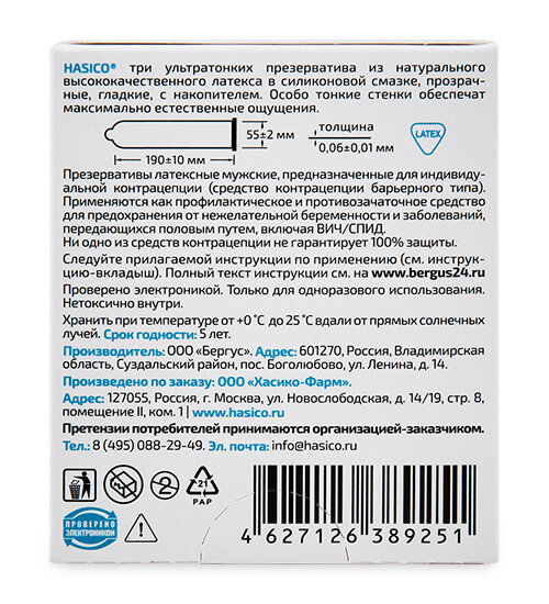 Хасико презервативы Ультратонкие №3 (МИ) GL-37/17 113-852694 интересное: