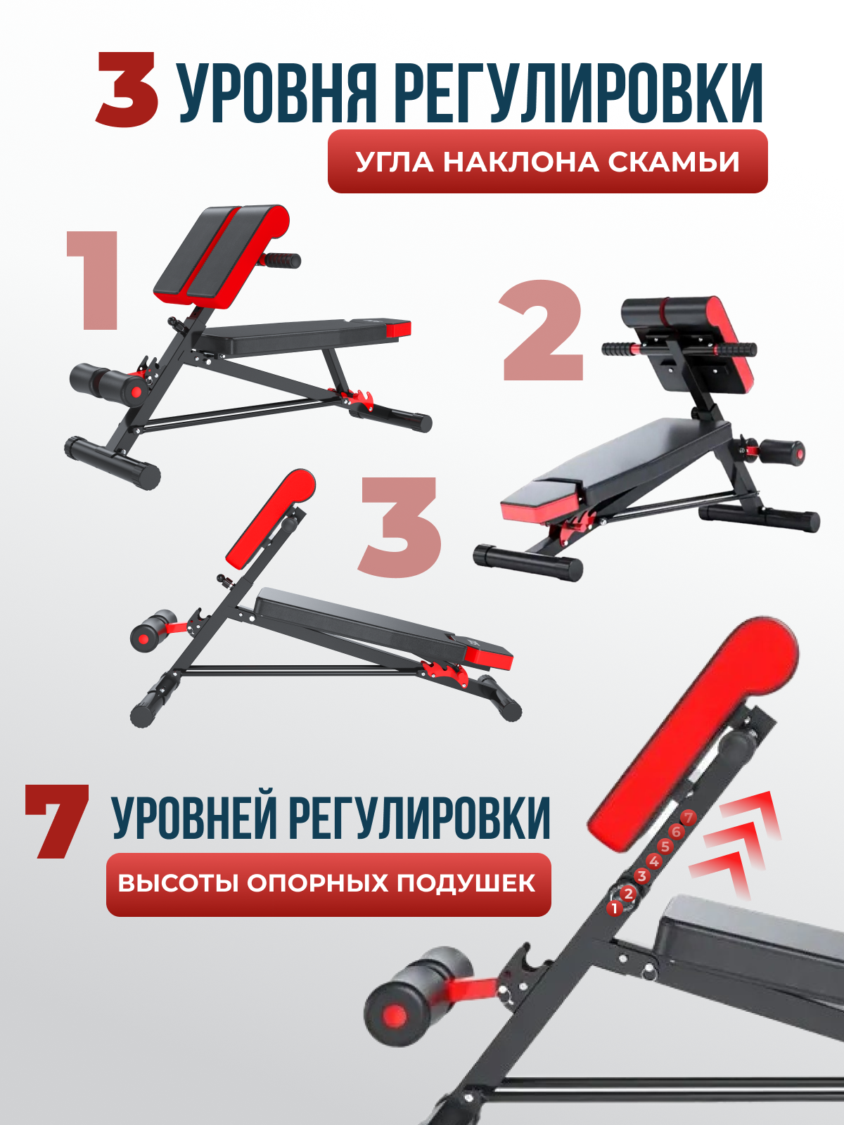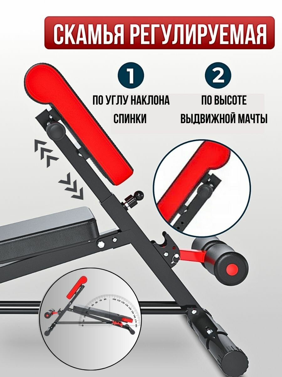 | Особенности | положение для тренировки пресса / регулировка наклона / регулировка упора для ног / складной |