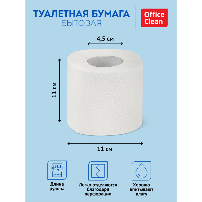 Бумага туалетная 2-слойная OfficeClean, белая, 14.5м, 12 рул/уп (279672)