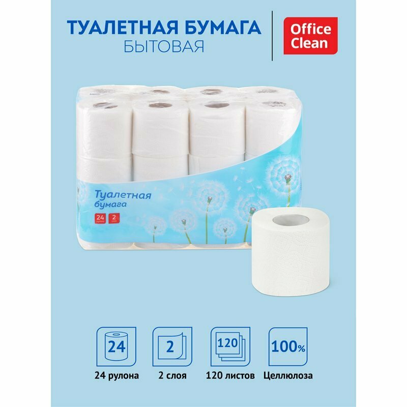 Туалетная бумага OFFICECLEAN белая, 2 слоя, 24 рулона