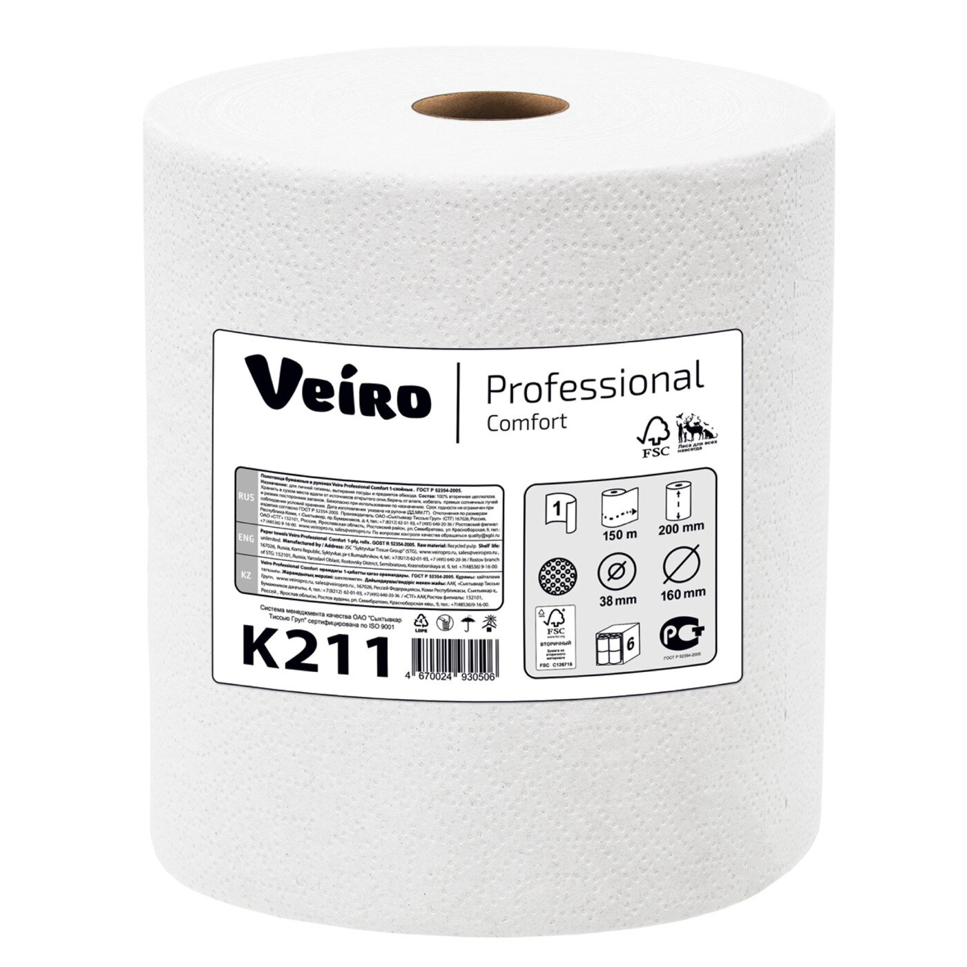 K211 Бумажные полотенца в рулонах Veiro Professional Comfort белые однослойные (6 рул х 150 м) интересное: