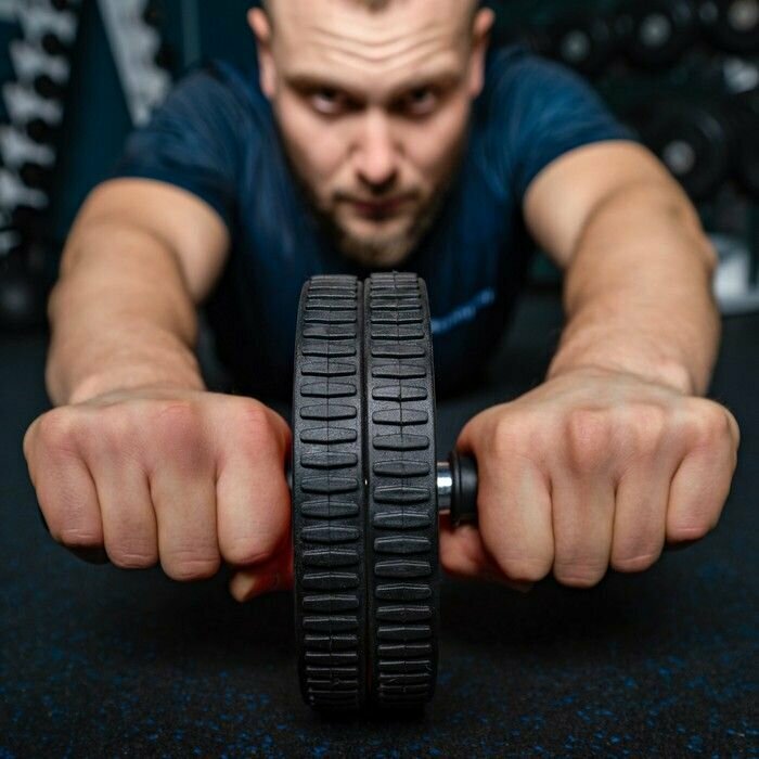 Ролик для пресса двойной, тренажёр гимнастический для женщин и мужчин, цвета микс интересное: