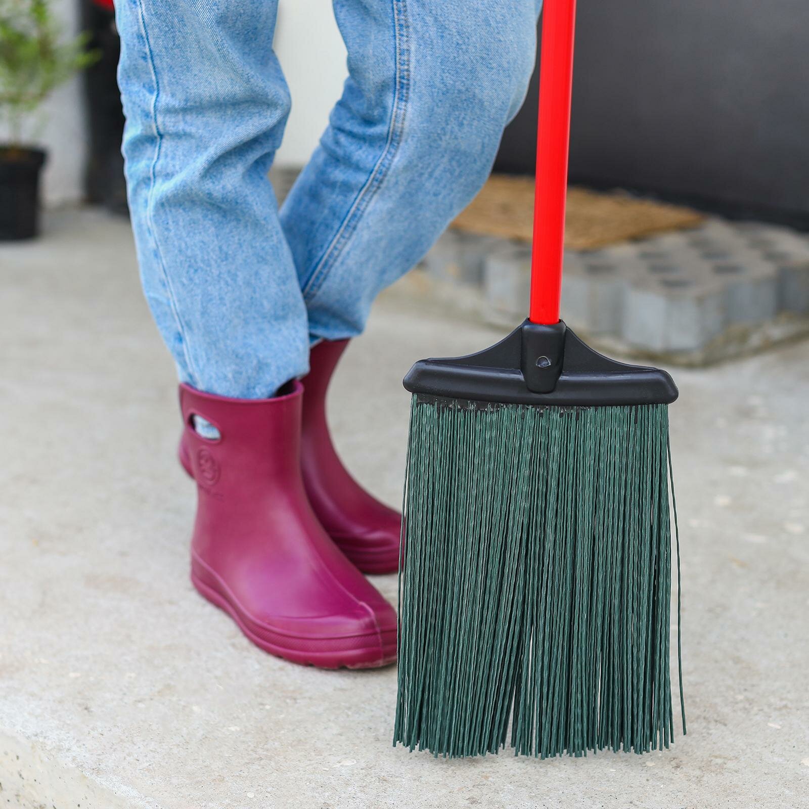 Метла Vega, синтетическая, для улицы, круглая, 3 кольца, щетина 30см, с дерев. черенком 120см, 360668