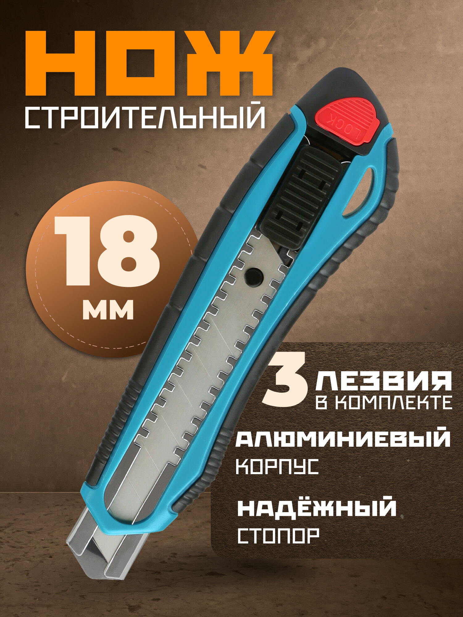 Нож строительный SmartBuy SBT-KNT-18P1 (18 мм, трапециевидное лезвие, алюминиевый корпус)