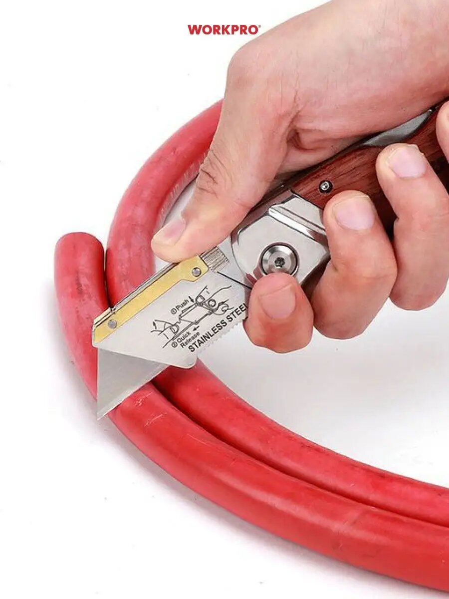 СохранитьWORKPRO Нож складной ручка из дерева (10 лезвий) трапец. лезвия WP211014 интересное: