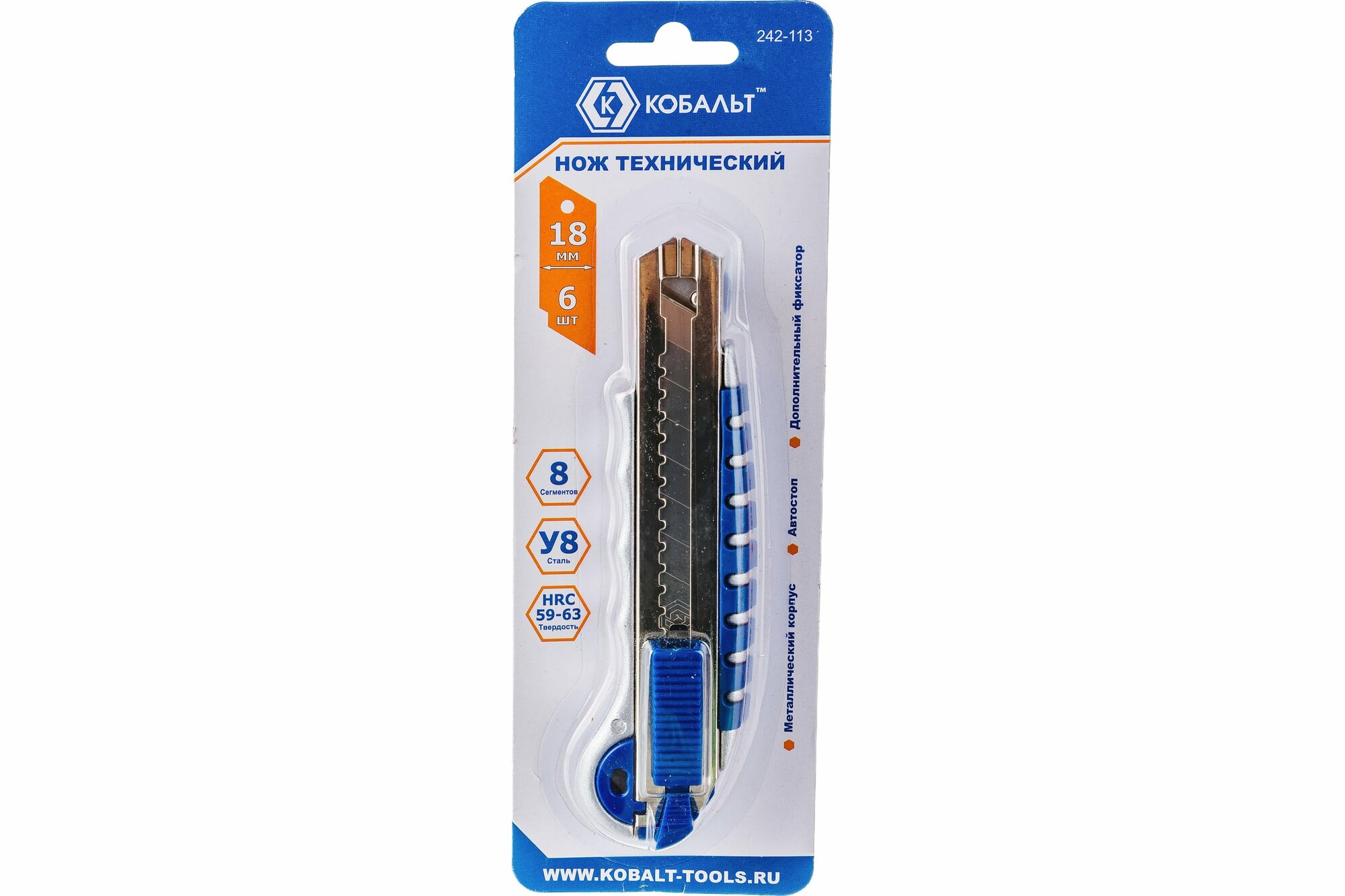 Нож строительный/канцелярский кобальт лезвие 18 мм (6 шт. в комплекте), металлический корпус интересное: