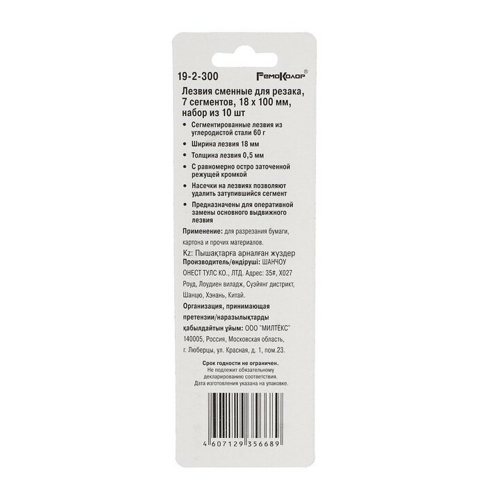 Лезвия для ножей Hobbi/Remocolor, сегментированные, 18х100 мм, 10 шт., 2 штуки интересное:
