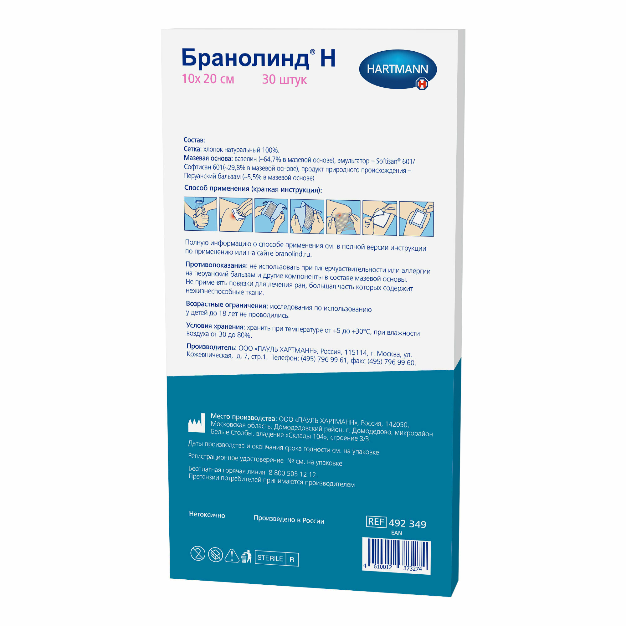 Мазевые повязки PAUL HARTMANN branolind n, 30 шт, ранозаживляющие, 7,5х10 см (492343)