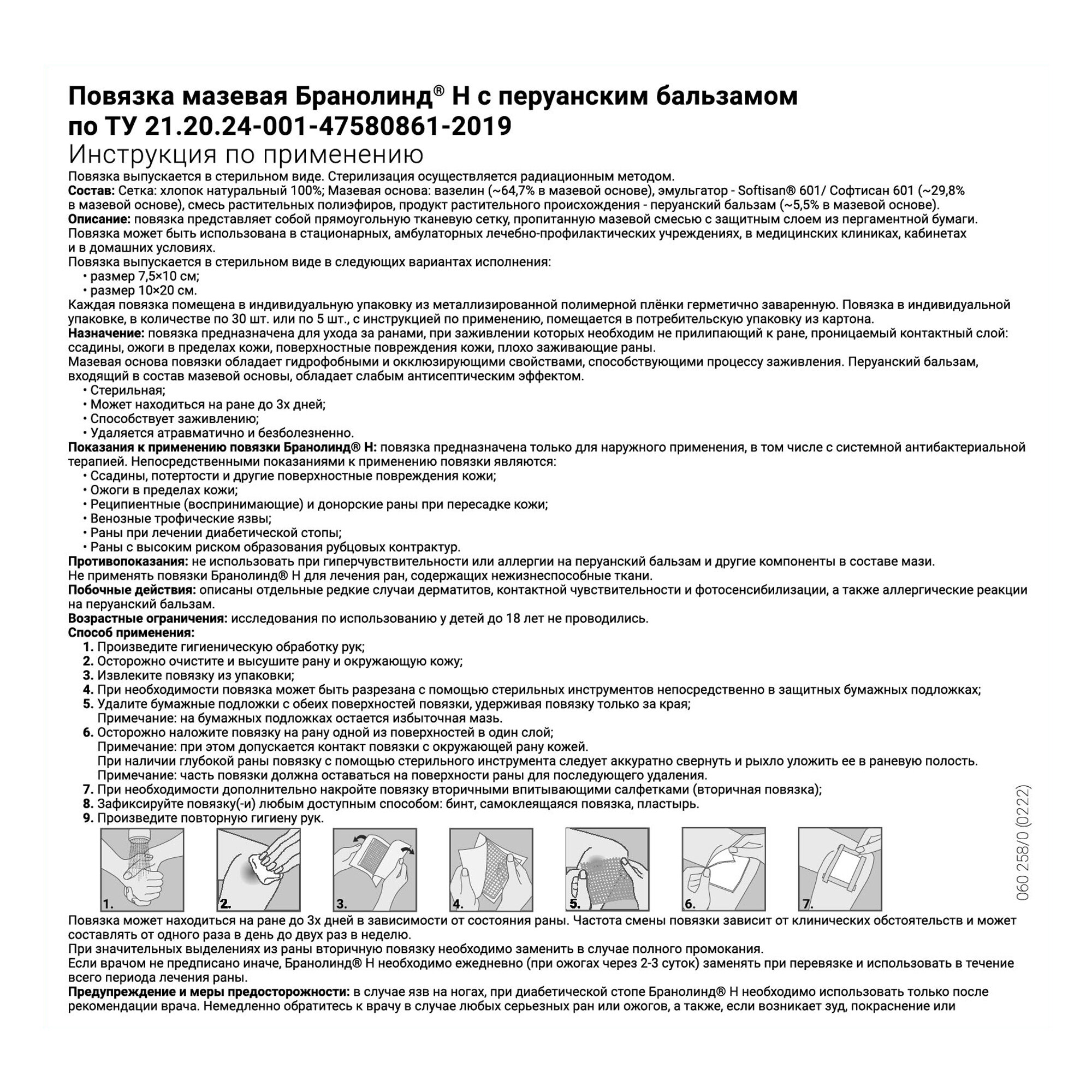Повязка Бранолинд Н с перуанским бальзамом 7,5х10 см 30 шт