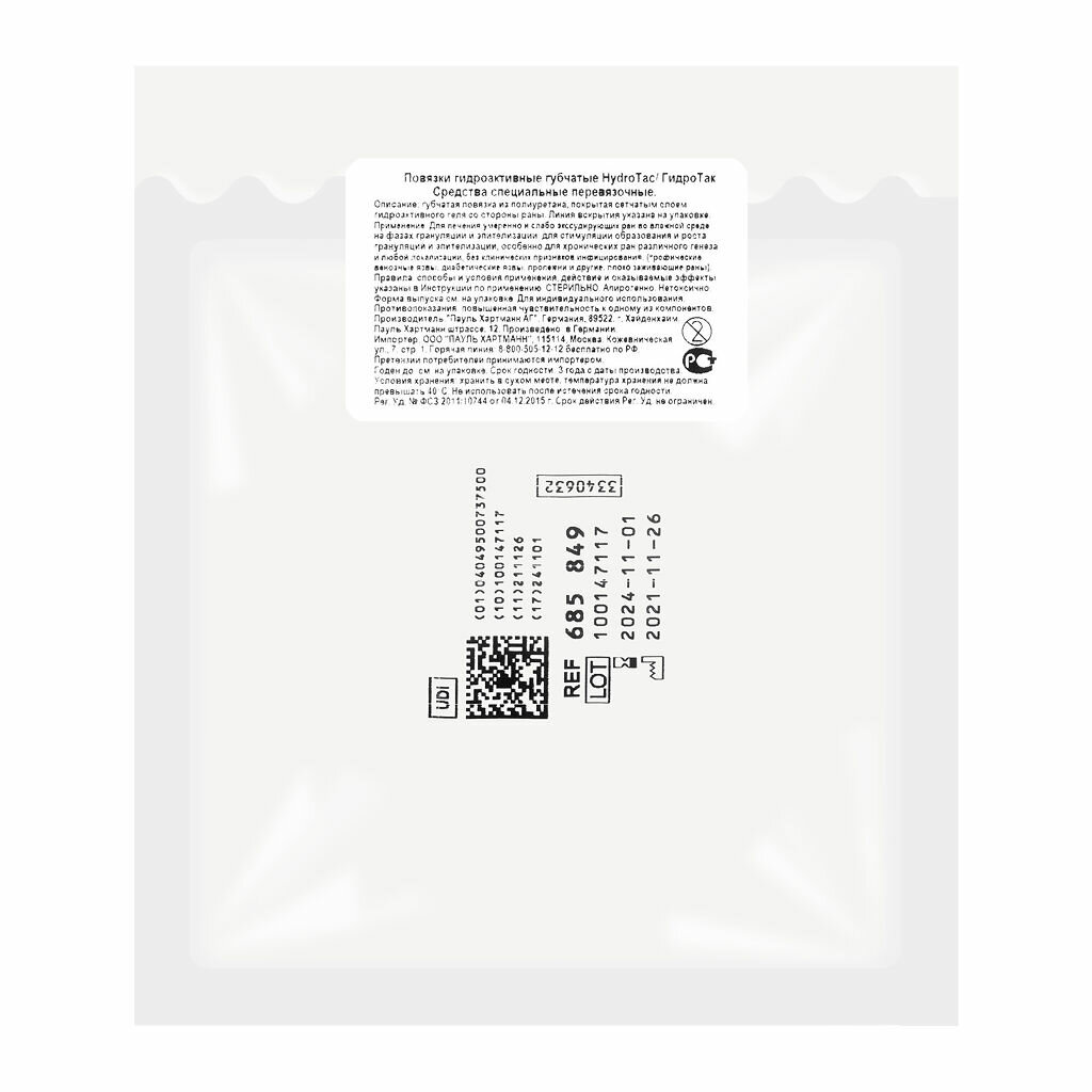 | Вид повязки | гидрогелевая |