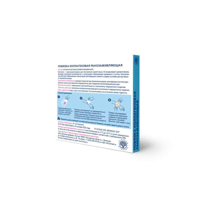 Повязка коллагеновая ранозаживляющая 100х100х8 мм 1 шт интересное: