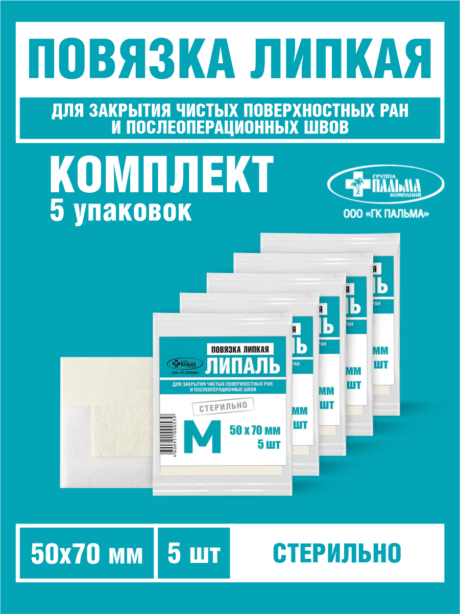 Повязки липкие Липаль М 5 х 7 см. 5 шт./упак. х 5 упак. интересное: