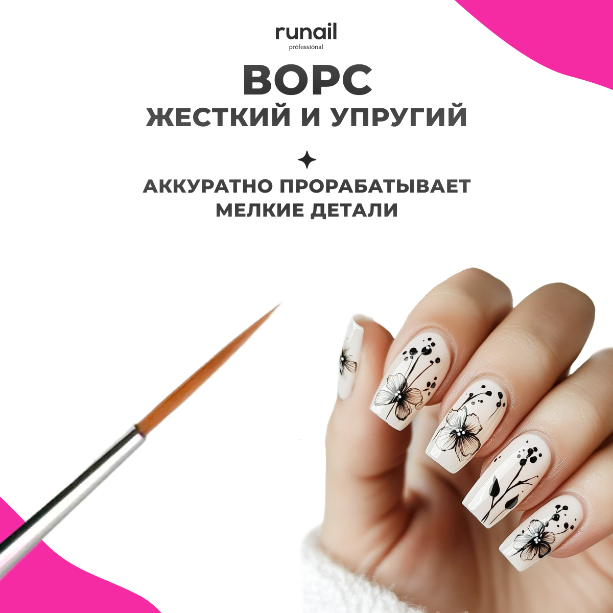 Runail Professional Кисть для геля косметическая, для дизайна ногтей, для маникюра и педикюра Gel Synthetic GNR № 0 № 0166 интересное:
