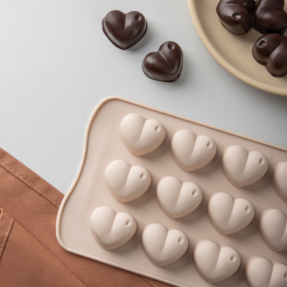 Форма силиконовая для шоколада и льда VETTA Конфета, 21x10x1,6 см15 ячеек, цвет бежевый интересное: