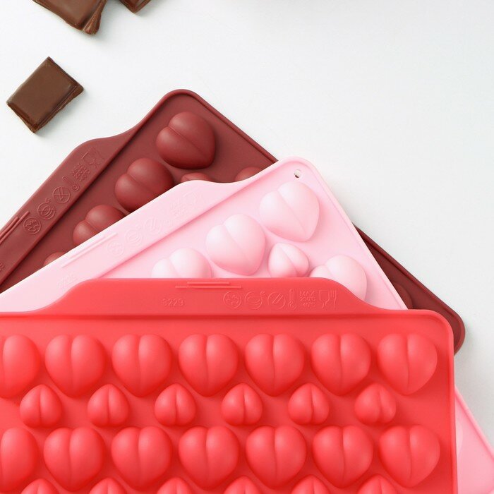 Форма для кондитерских украшений Доляна «Море сердец», силикон, 18×15×1 см, 52 ячейки, цвет микс интересное: