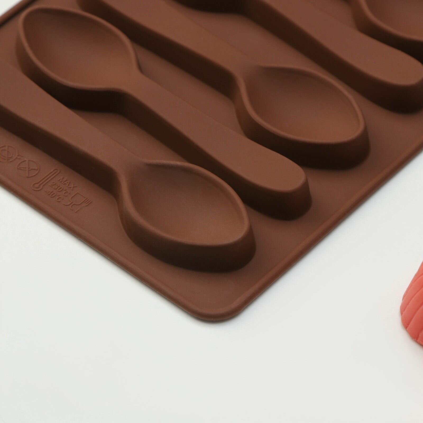 Купить Форма для украшений Доляна «Ложечки», силикон, 18×12×1,2 см, 6 ячеек (9,8×2,3 см), цвет коричневый