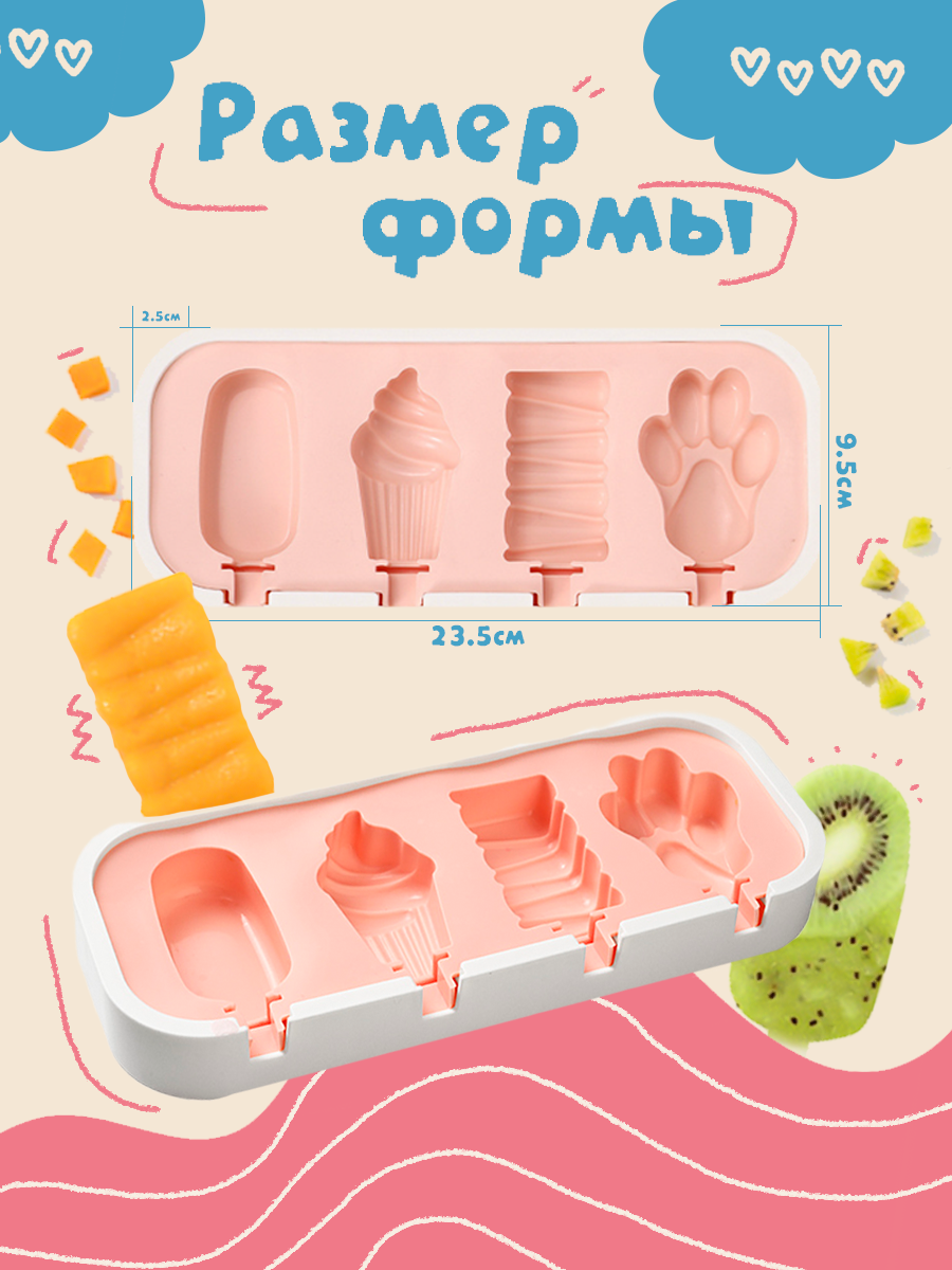 Силиконовая форма для леденцов и мороженого, 4 ячейки