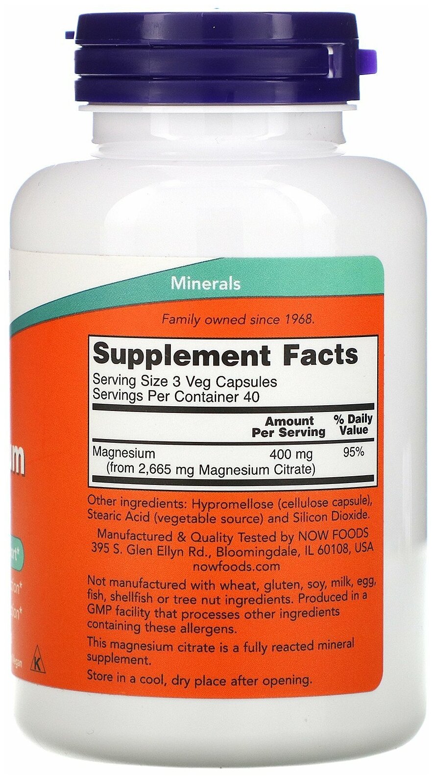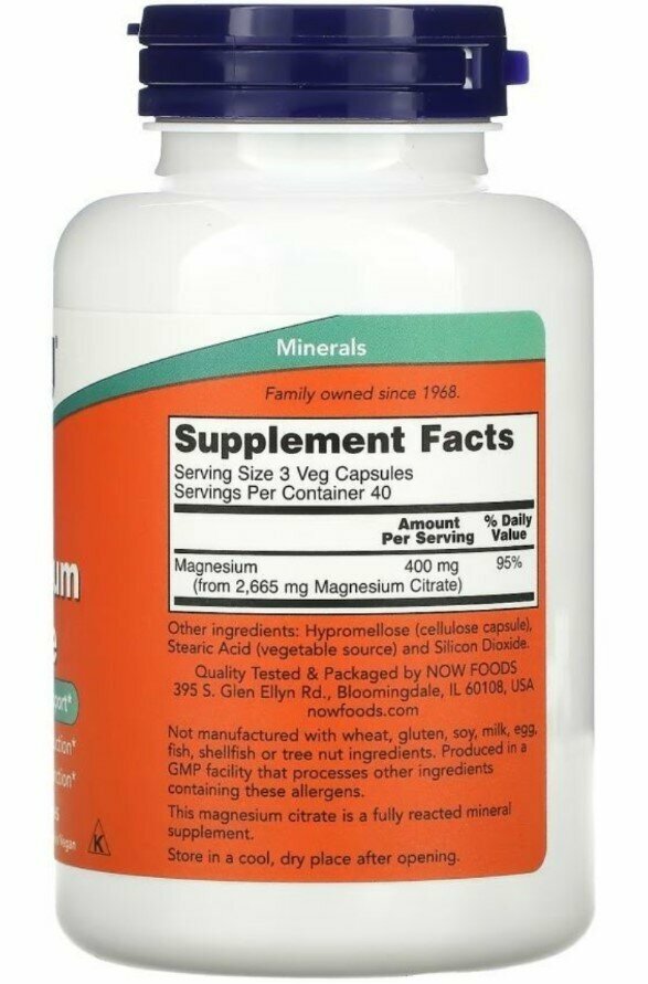 | Комплектация | NOW Foods, Magnesium Citrate, цитрат магния, 120 вегетарианских капсул - 1 банка |