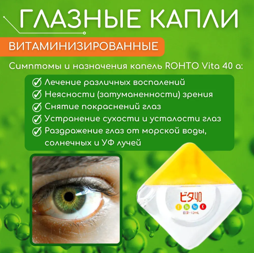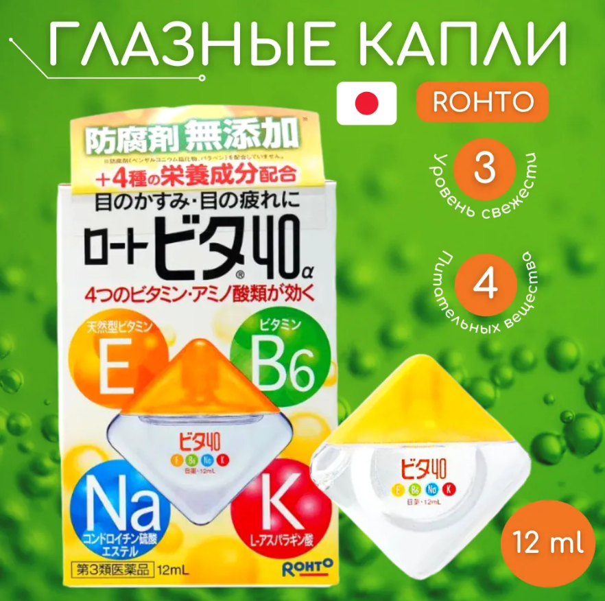 Rohto 40 Vita Alfa японские капли для глаз с витаминами, 12 мл интересное:
