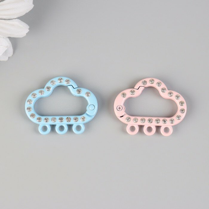 Карабин металл, пластик с кольцами "Облако со стразами" набор 2 шт 2,4х3 см интересное: