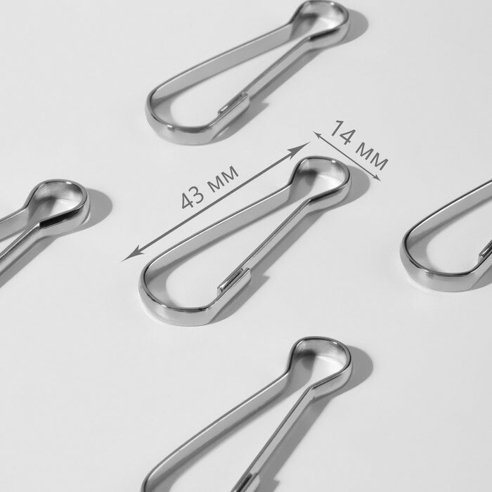 Карабин проволочный, железный, 43 × 14 мм, тодщина - 3,5 мм, цвет серебряный, цена за 1 штуку(100 шт.) интересное: