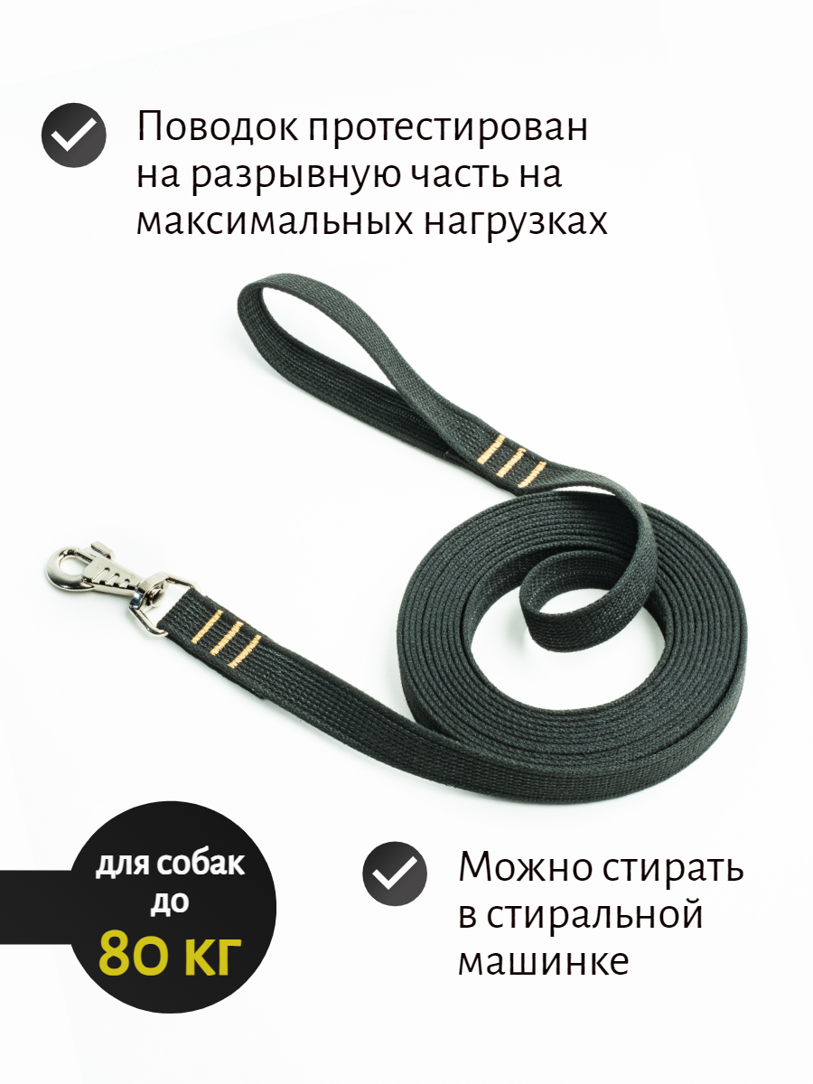 Поводок для собак Хвостатыч PRO прошитый с карабином брезент 10 м х 25 мм (черный)