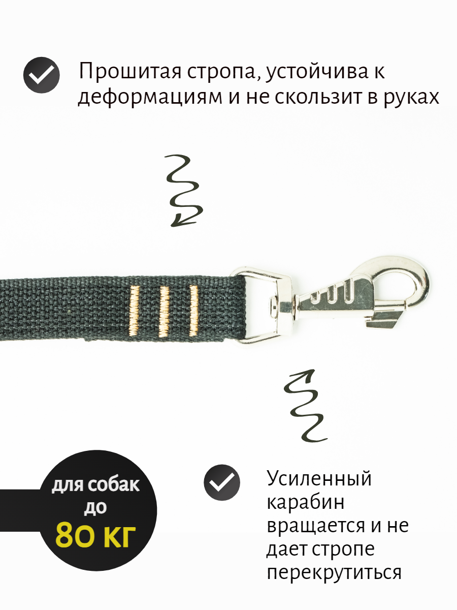 СохранитьПоводок для собак Хвостатыч PRO прошитый с карабином брезент 2 м х 25 мм (черный) интересное: