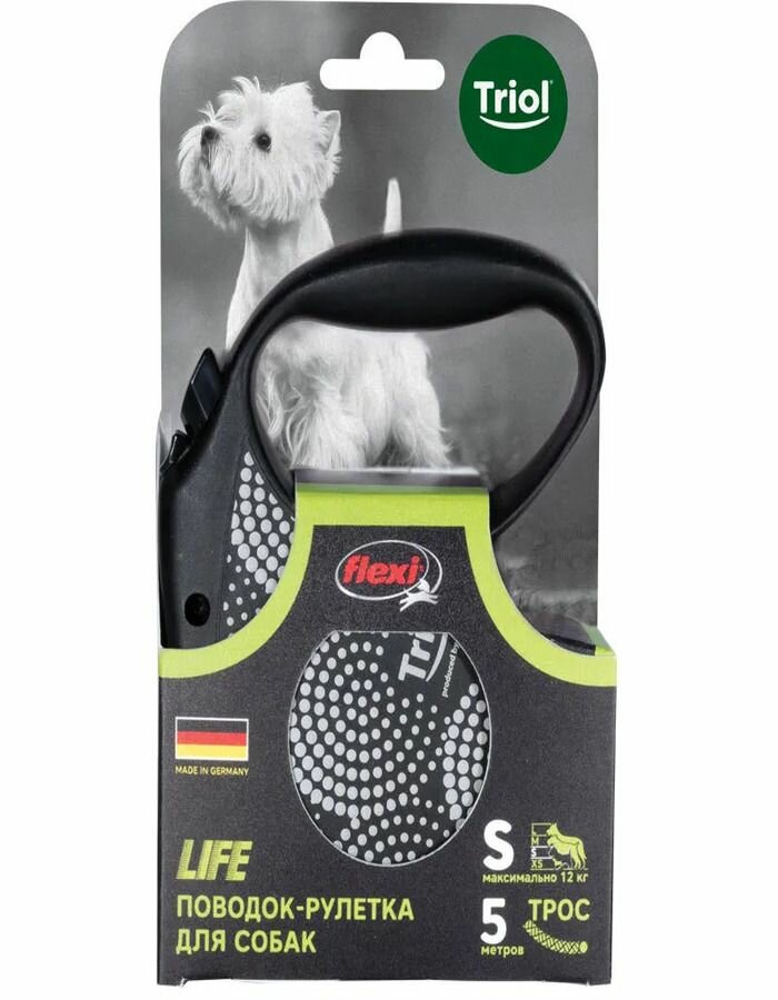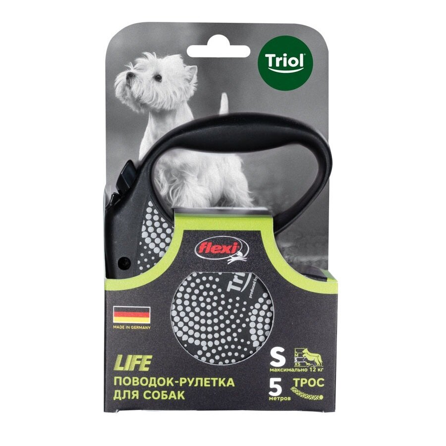 Поводок-рулетка Triol для собак Flexi Life Bubbles S (до 12 кг), 5 м, трос