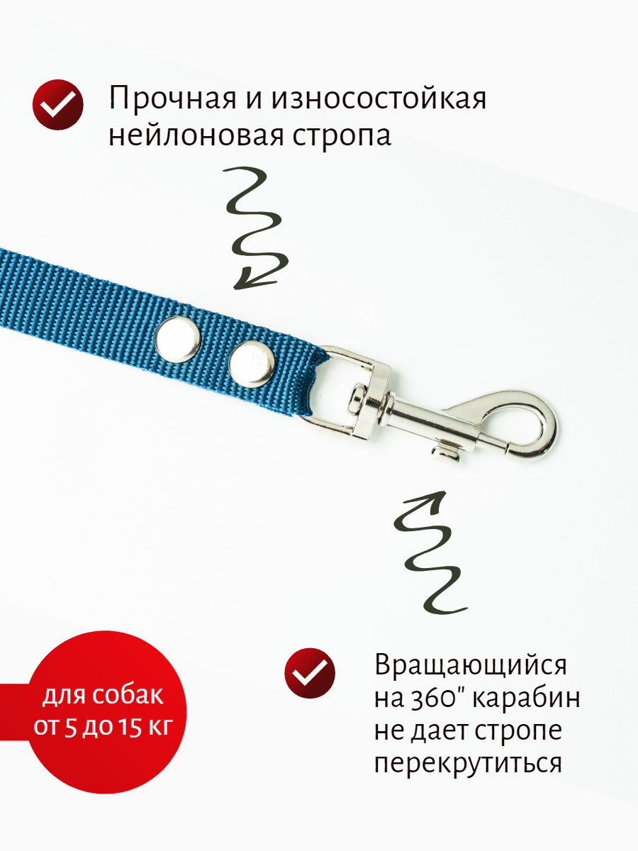 Поводок Хвостатыч для собак нейлоновый классический 1.5 м х 15 мм (Синий)