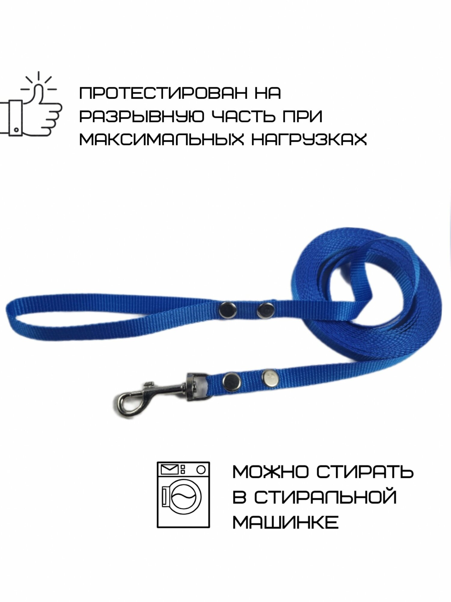 Поводок Хвостатыч для собак нейлоновый классический 1.5 м х 15 мм (Синий)