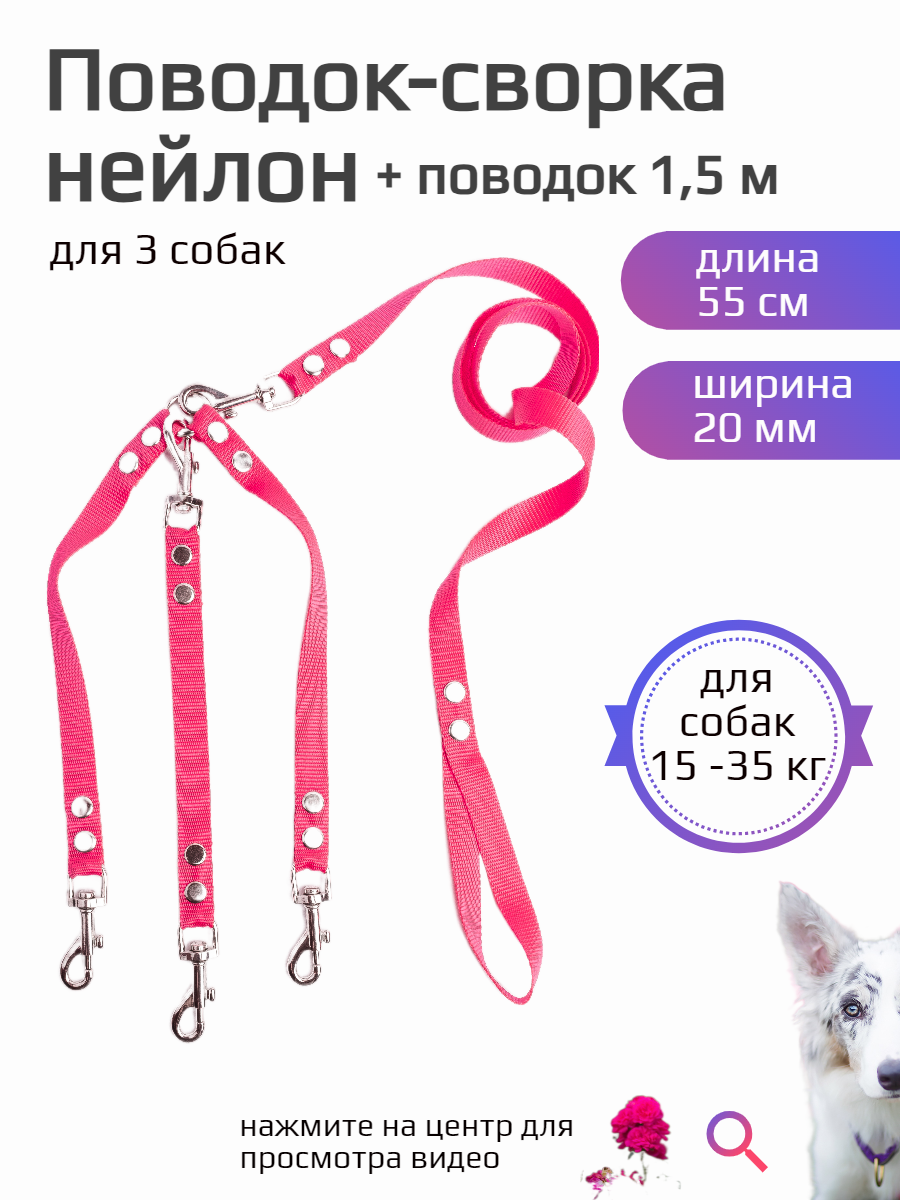 СохранитьПоводок 1,5 м + сворка для двух собак средних пород нейлон 55 см х 20 мм (розовый) интересное: