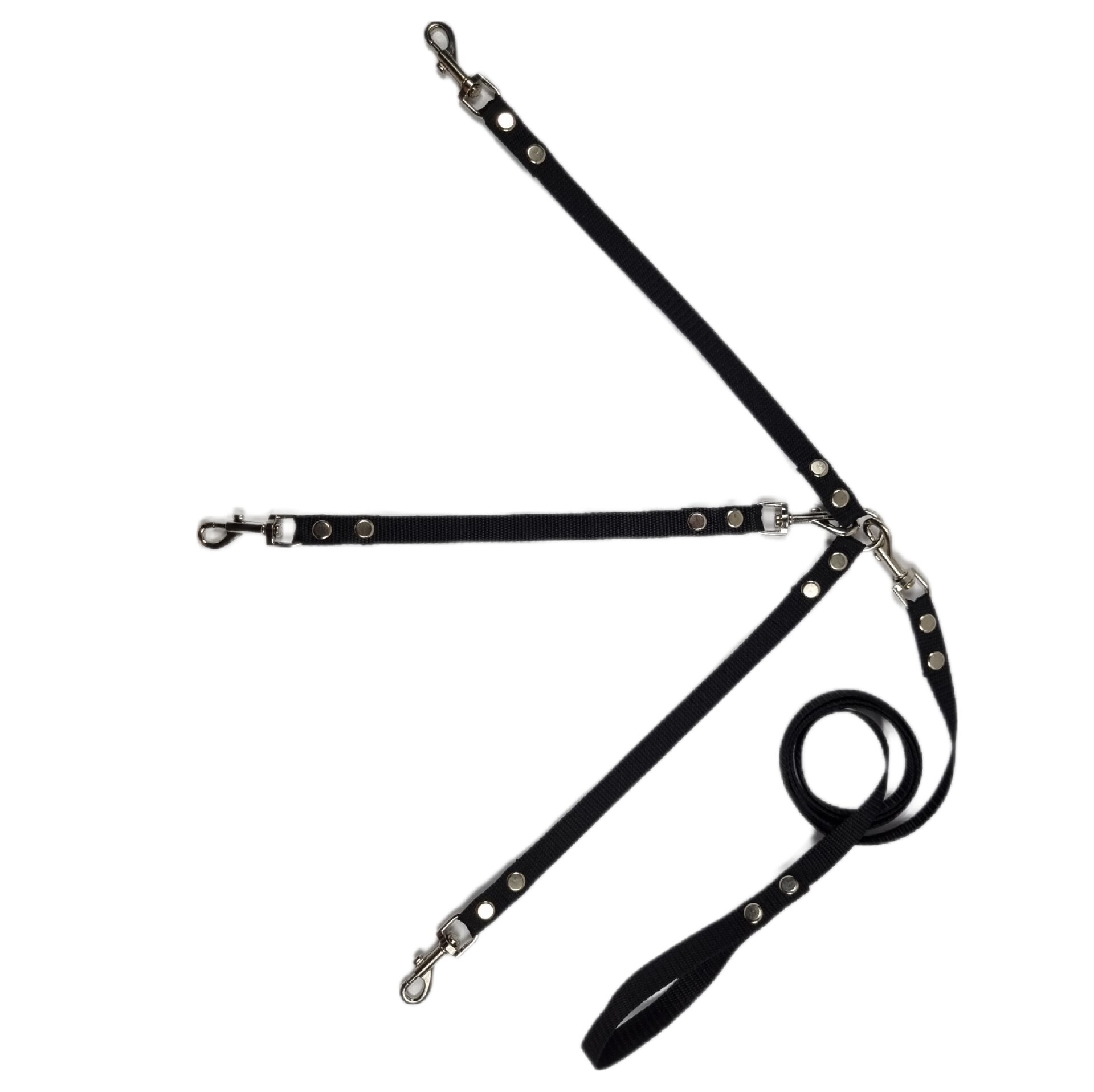Купить Поводок 1,5 м + сворка для двух собак средних пород нейлон 40 см х20 мм (Черный)