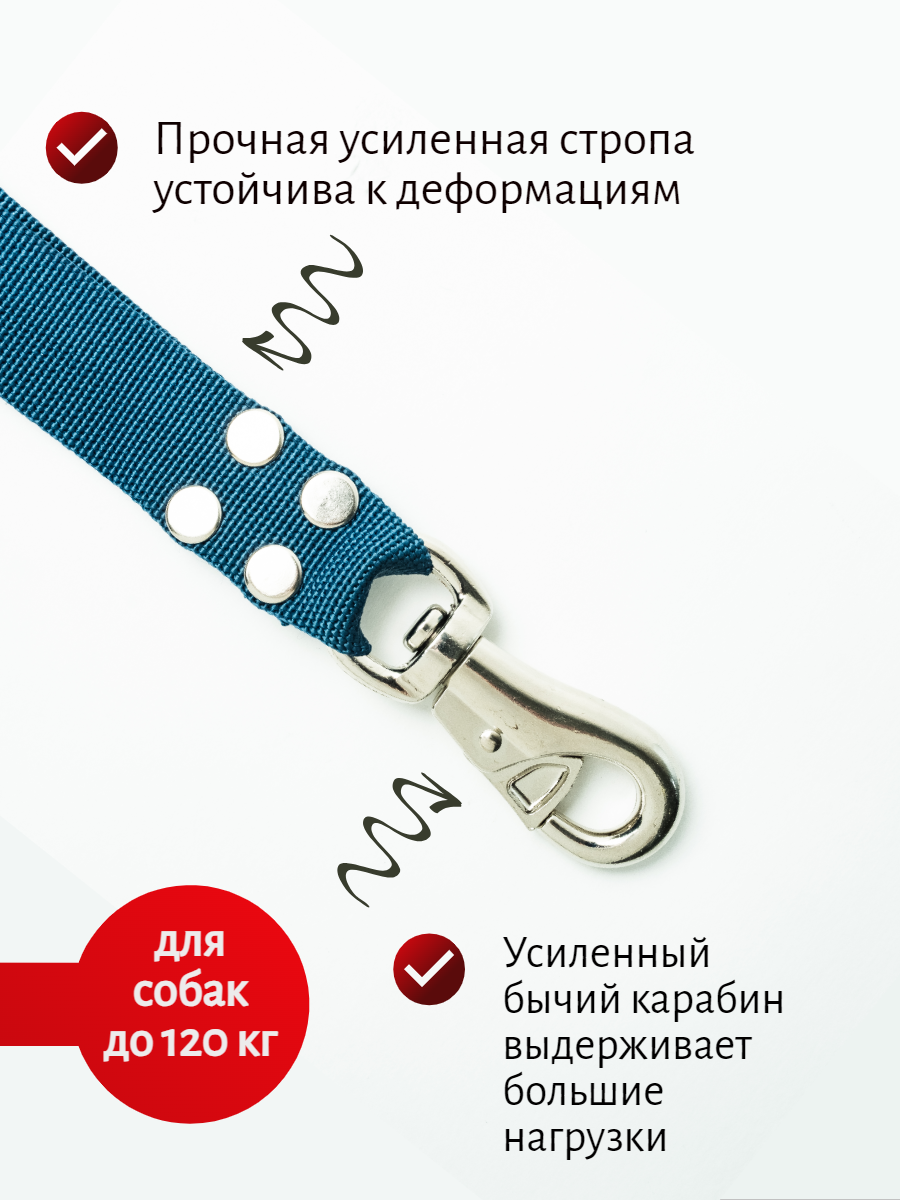 Купить Поводок 2 в 1 для собак с бычьим карабином нейлон 5 м х 35 мм (темно-синий)