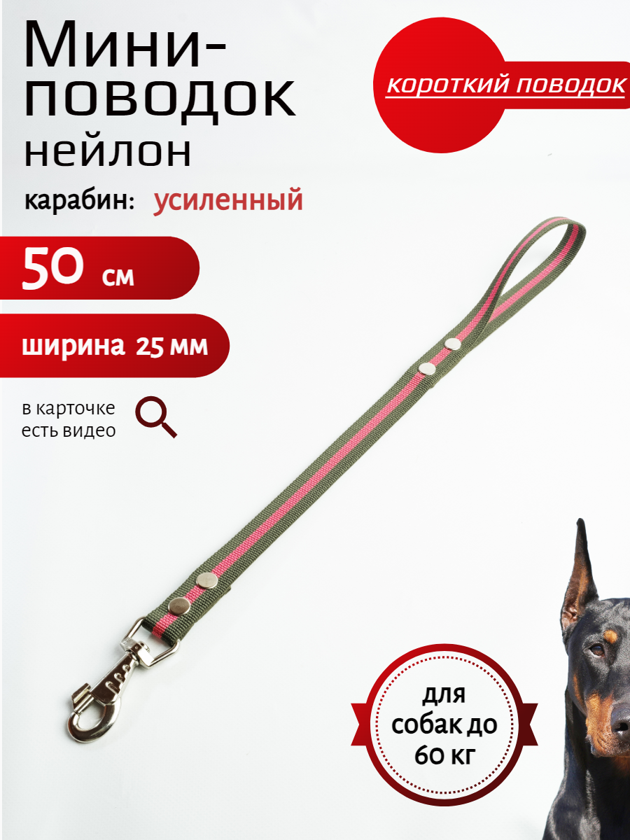 Купить Поводок Хвоствтыч для собак с карабином нейлон 50 см х 25 мм (Зелено-красный)