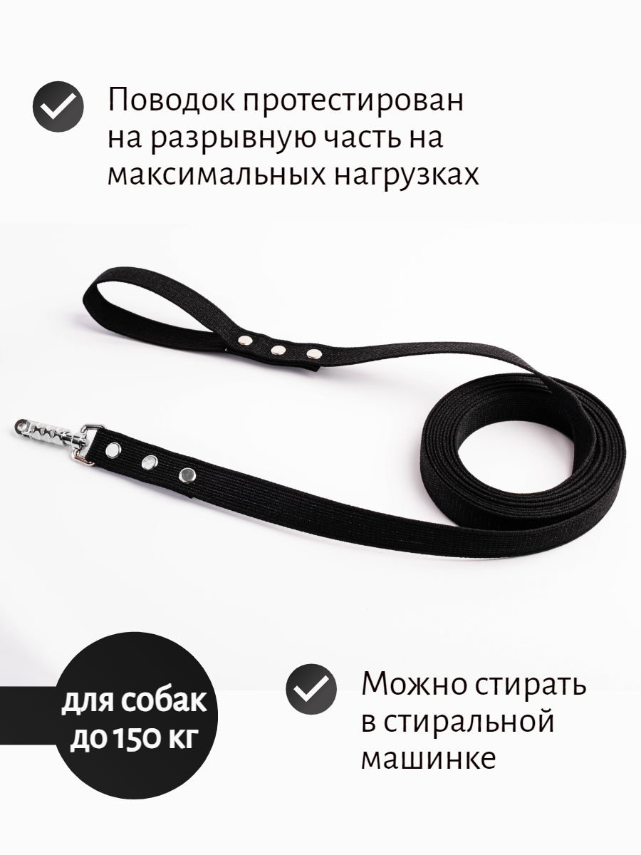 Поводок для собак с цилиндрическим карабином брезент 2 м х 30 мм (черный)
