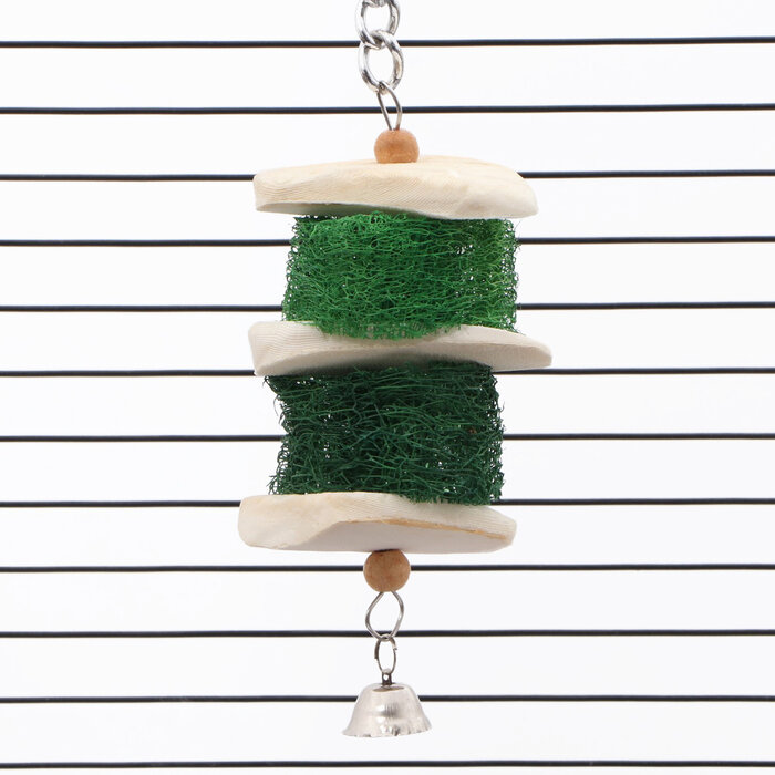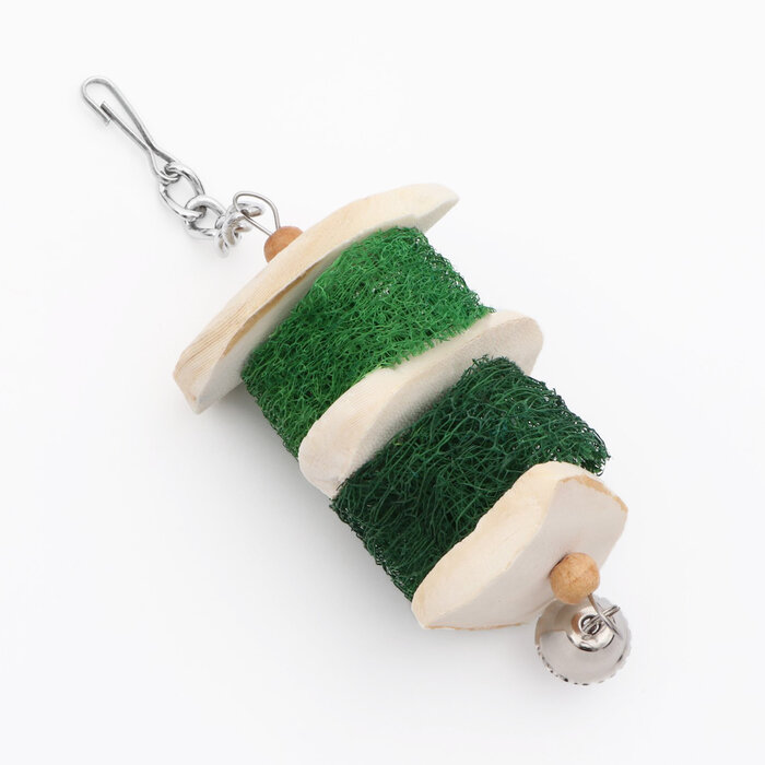 Купить Игрушка с панцирем каракатицы, люфой и колокольчиком, 20 х 5 см, зелёная