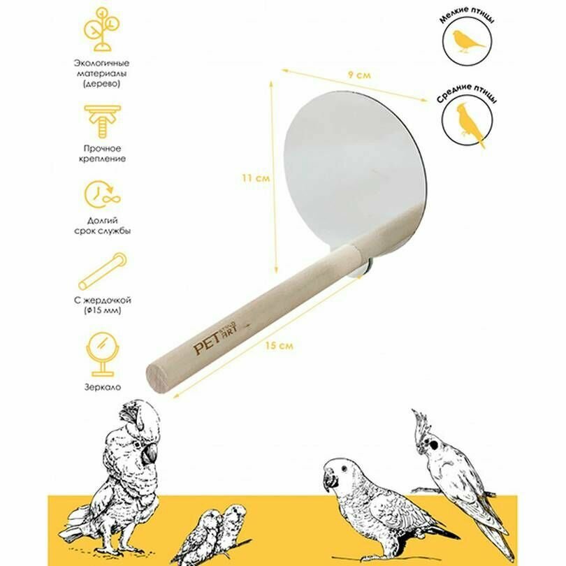 Игрушка для птиц, PetStandArt, деревянная жердочка с зеркалом, 15 х 11 х 9 см, 1 шт. интересное: