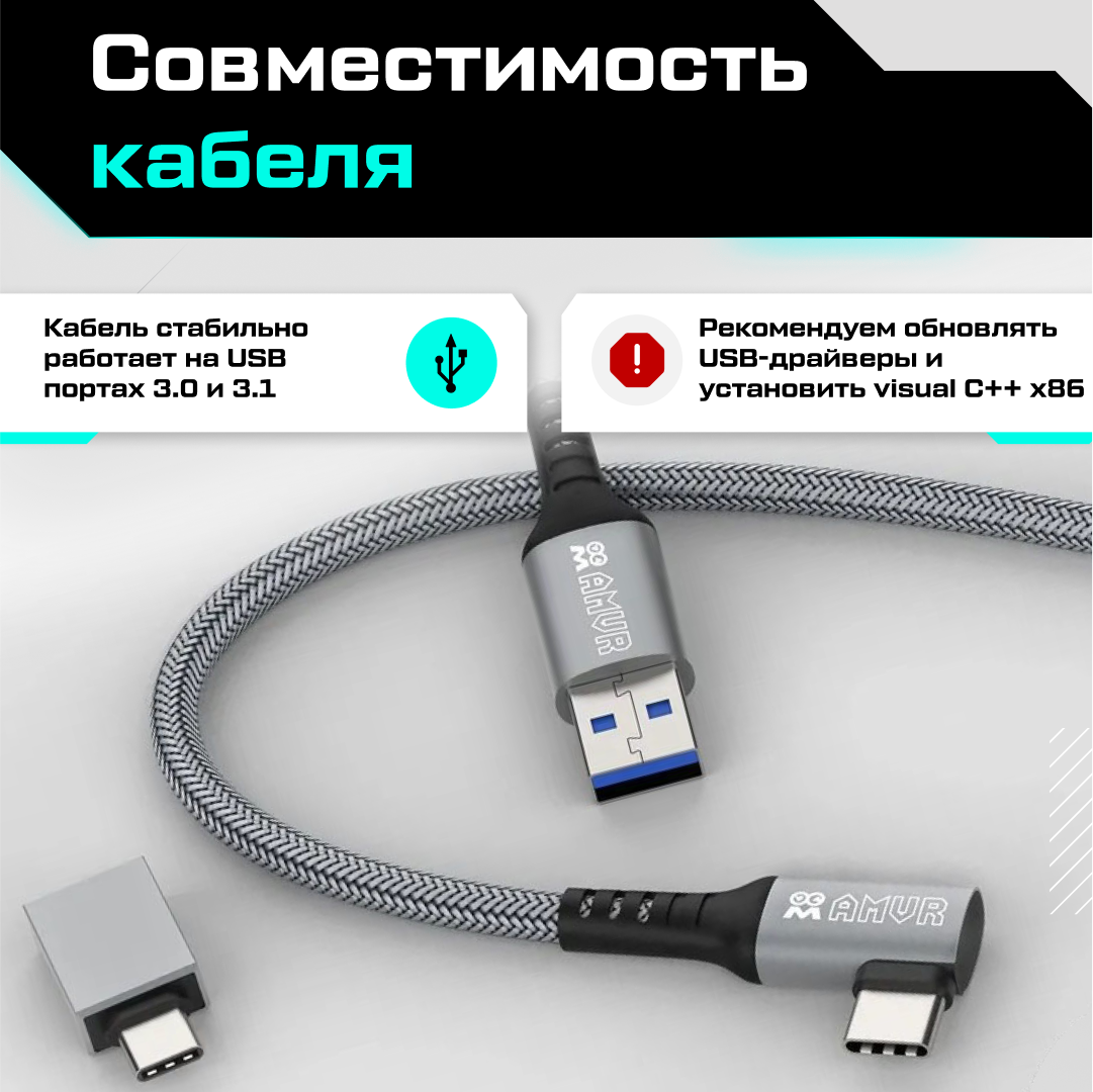 | Комплектация | Кабель AMVR Oculus Link для Oculus Quest 2, силиконовая стяжка, Type-C адаптер, документация |