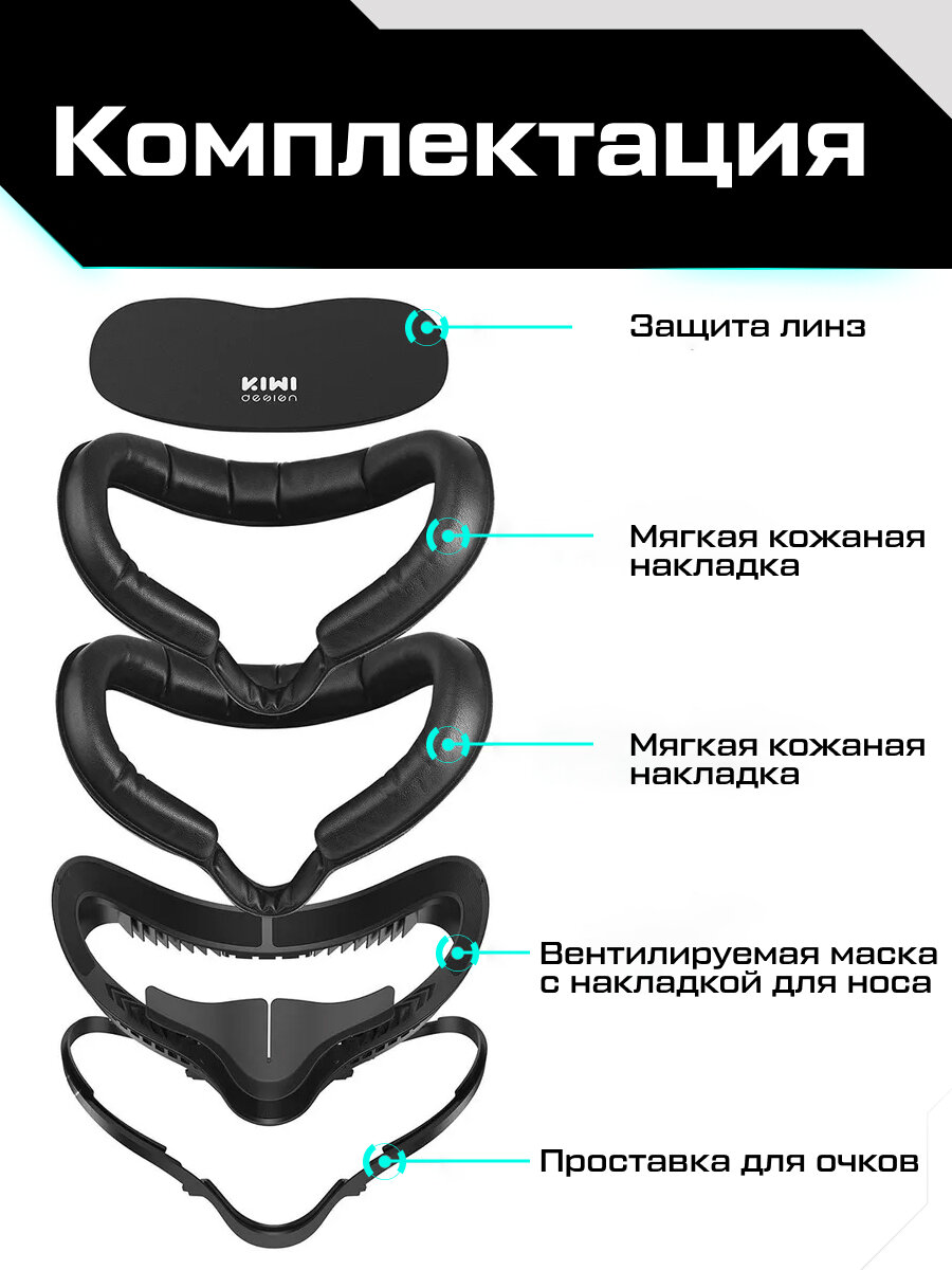 | Дополнительная информация | Маска / комплект накладок для лица KIWI design для Oculus Quest 2 набор 5 в 1 |