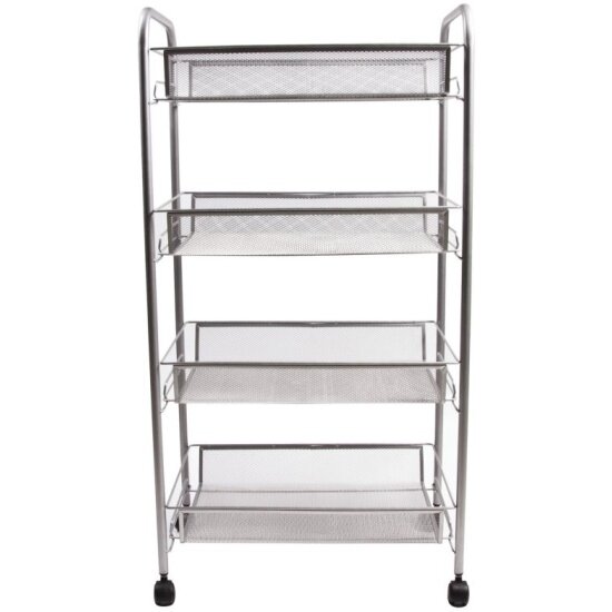 Купить Этажерка Brabix (тележка) офисно-бытовая 4 яруса, на колесах, металл, серебристая, 43,5х26х83,5 см, 603754