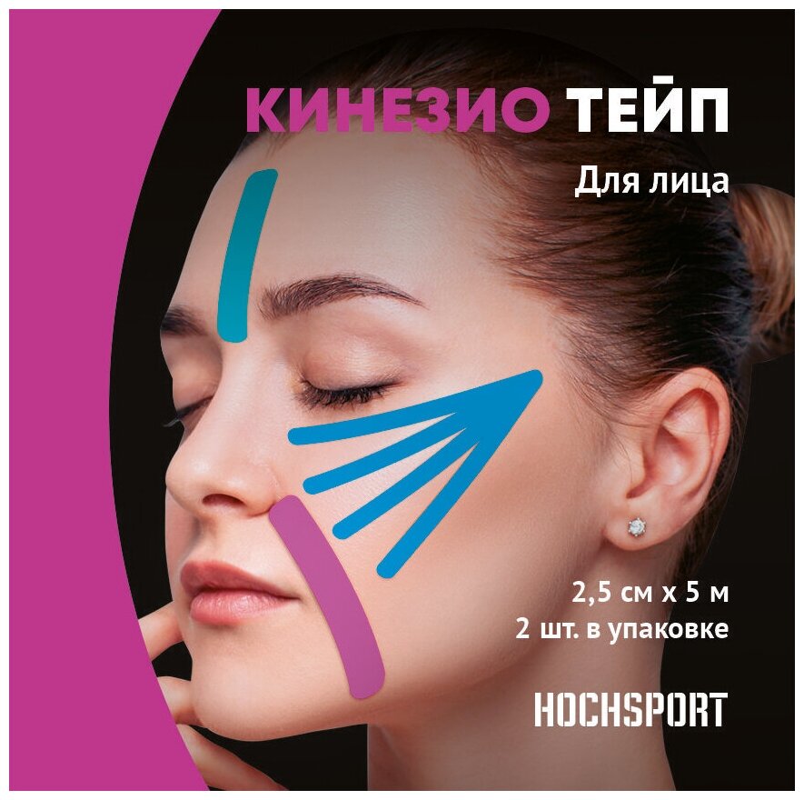 Кинезио тейп для лица и тела HochSport. Комплект 2 шт, синий