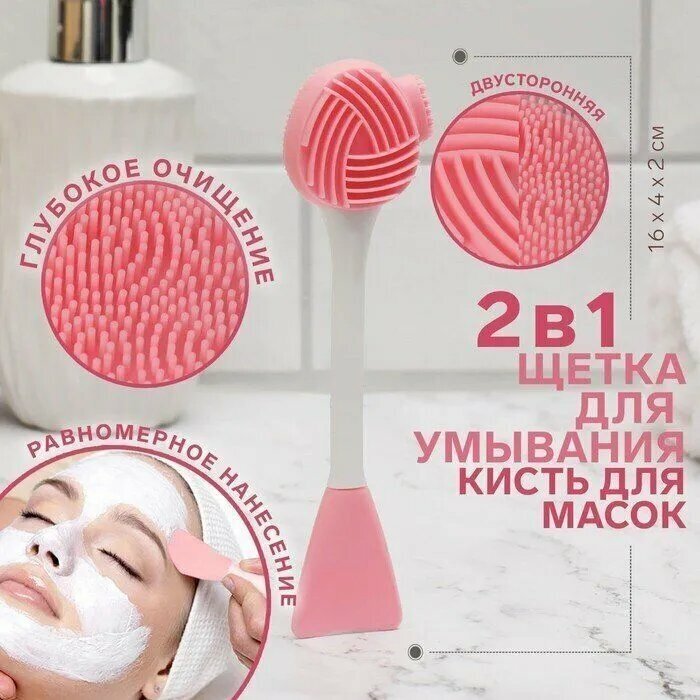Щеточка для умывания и чистки лица, нанесения масок, для массажа розовая интересное: