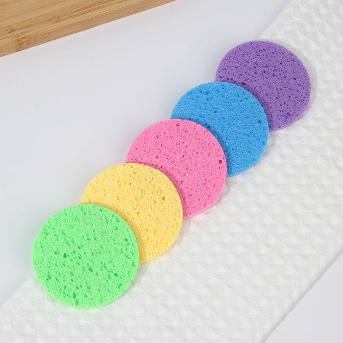 Купить Спонж для умывания, круглый, цвет микс, 4 штуки