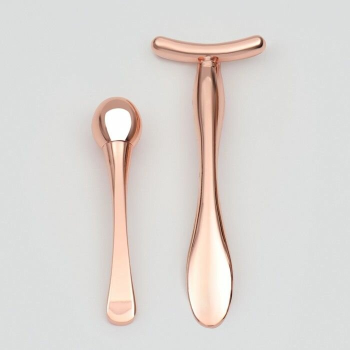 Купить Набор из 2 массажёров цвета розового золота для лица и зоны декольте