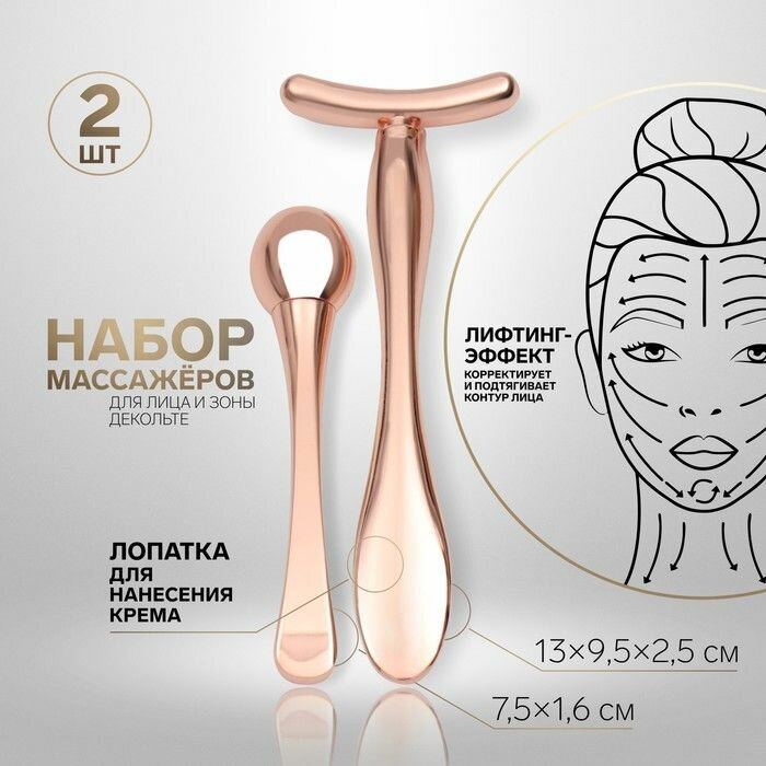 Набор из 2 массажёров цвета розового золота для лица и зоны декольте интересное: