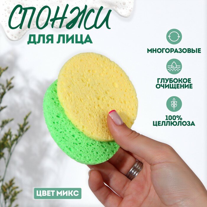 Купить Спонжи для умывания, круглые, 2 шт, цвет микс, 3 штуки