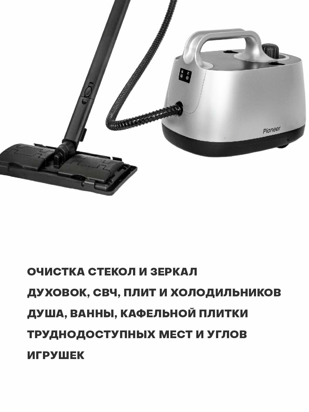 Пароочиститель для дома Pioneer SC290 напольный, 8 насадок, бойлер 1,6 л, возможность использования в качестве паровой швабры, 2000 Вт интересное: